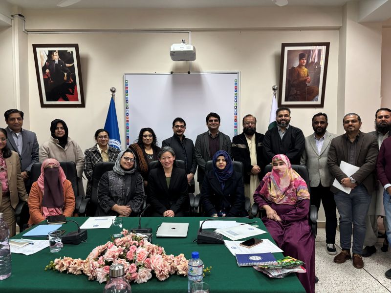 パキスタン国立科学技術大学(National University of Sciences and Technology)教員の皆さんとフォーカス・グループ・ディスカッション実施時の様子(廣野アソシエイトフェロー(前列右から3番目)、モデレーター・本学グローバル教養学部Saeeda Batool准教授(前列右から4番目))
