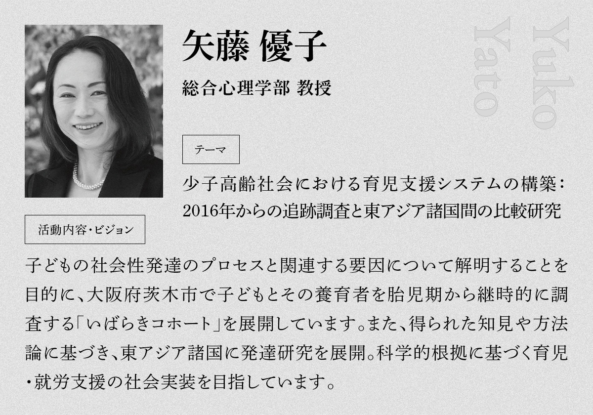 今回のNewsletterでは、総合心理学部の学部長を務めるRARAアソシエイトフェローの矢藤優子教授のインタビューをお届けします。